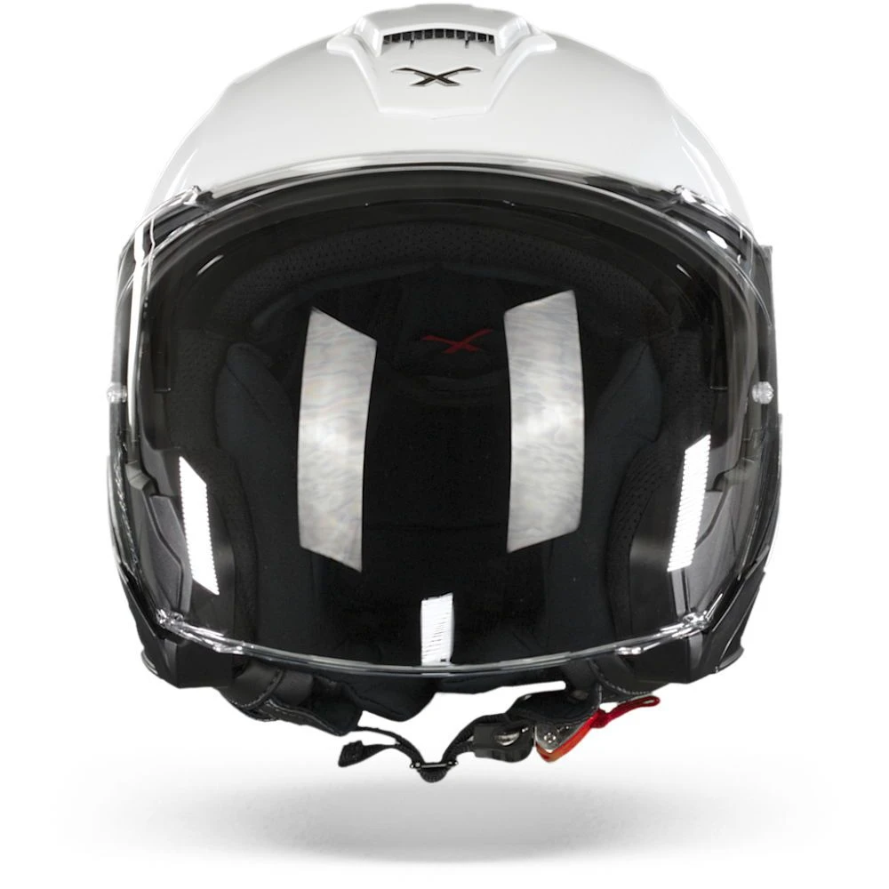 De belangrijkste taak van een helm is het bieden van bescherming. De van glasvezel / fiber mix gemaakte wit X.Viliby is over het algemeen sterker dan een polycarbonaat schaal. Deze helmen zijn licht van gewicht, duurzaam en enigszins flexibel, waardoor ze de schokken uitstekend kunnen opvangen. De kinband is een belangrijk onderdeel van de helm bij een botsing en het is ook het onderdeel waar je het meest mee te maken hebt bij het op- en afzetten van de helm. De X.Viliby is voorzien van een Micrometrische sluiting. Dit is een veilige en gebruiksvriendelijke sluiting, die gemakkelijk kan worden bijgesteld en, in tegenstelling tot andere soorten sluitingen, kan deze ook worden bediend met de handschoenen aan. Uiteraard zijn al onze helmen gecertificeerd en legaal voor de Europese wegen, aangezien deze helm ECE 22.05 is goedgekeurd.